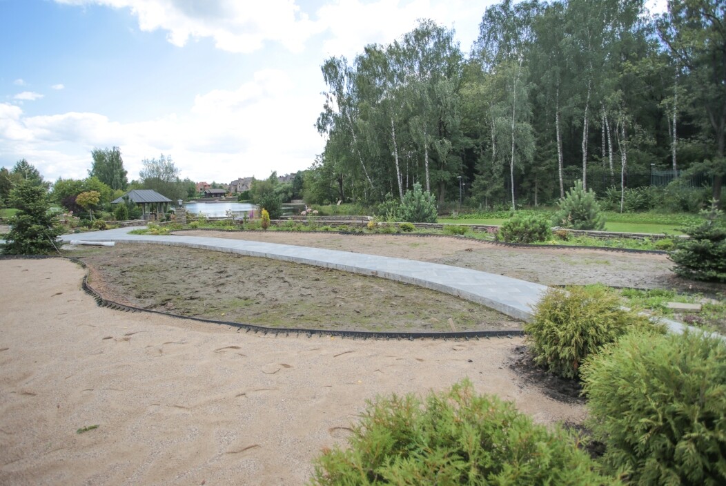 В процессе разработки дендроплана были спроектированы динамичные контуры газона, которые удалось успешно воплотить в жизнь. Также заново были разработаны планировки нижних террас - зона небольшого японского сада и сада бабочек. Реализация этих идей продолжается.