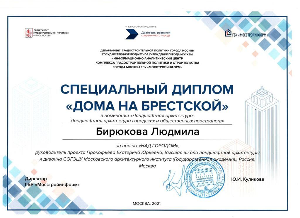 Дипломант конкурса проектов «Дома на Брестской» в номинации «Ландшафтная архитектура городских и общественных пространств».