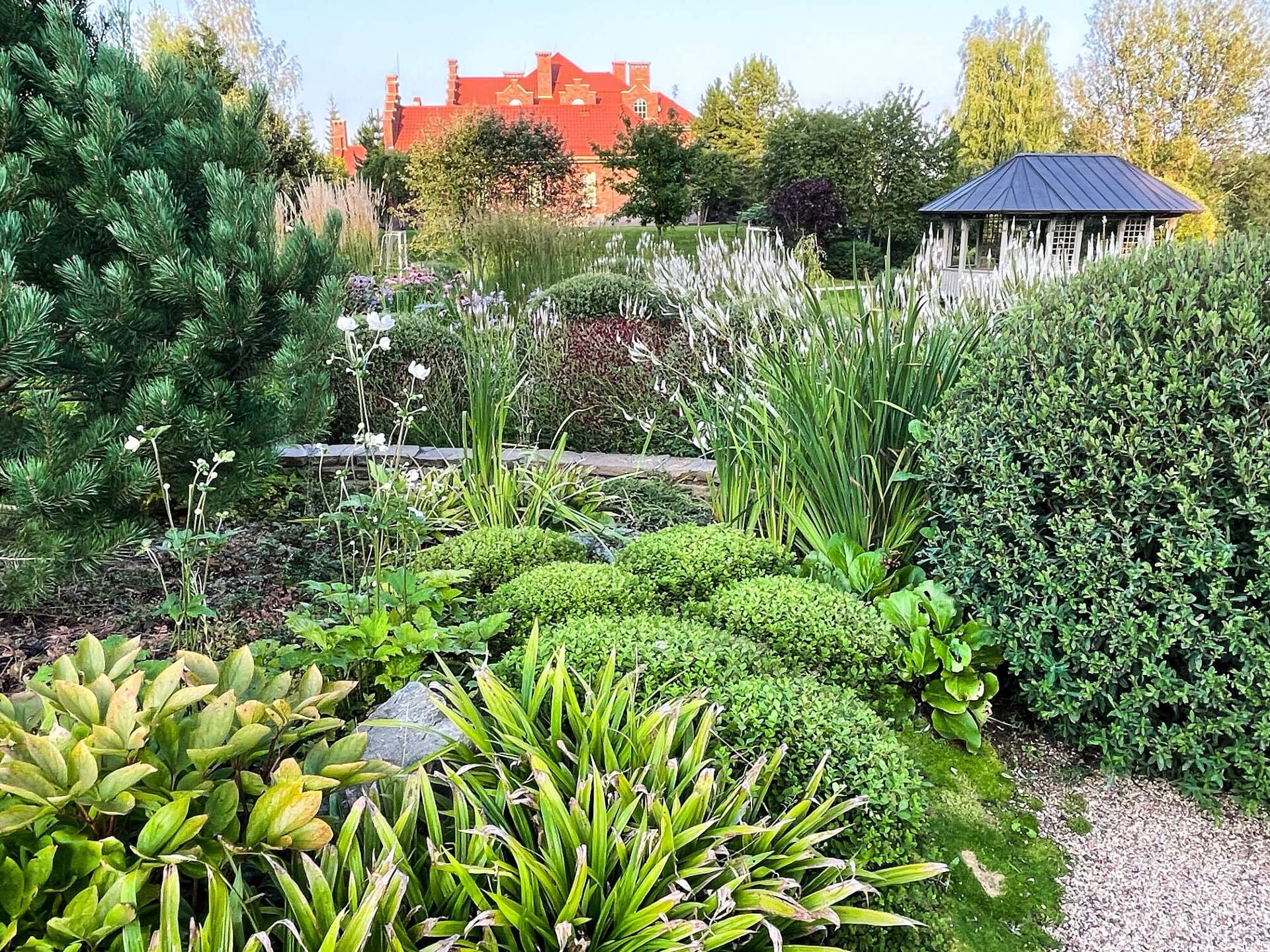 В процессе разработки дендроплана были спроектированы динамичные контуры газона, которые удалось успешно воплотить в жизнь. Также заново были разработаны планировки нижних террас - зона небольшого японского сада и сада бабочек. Реализация этих идей продолжается.