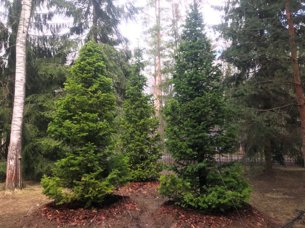 Для этой цели была выбрана пихта сибирская, как одна из вечнозеленых теневыносливых деревьев. Чтобы посадки наиболее эффективно выполняли поставленную задачу, предварительно были выстроены макеты очертаний деревьев в их реальную величину и уже только после этого вырыты посадочные ямы и заказаны растения.