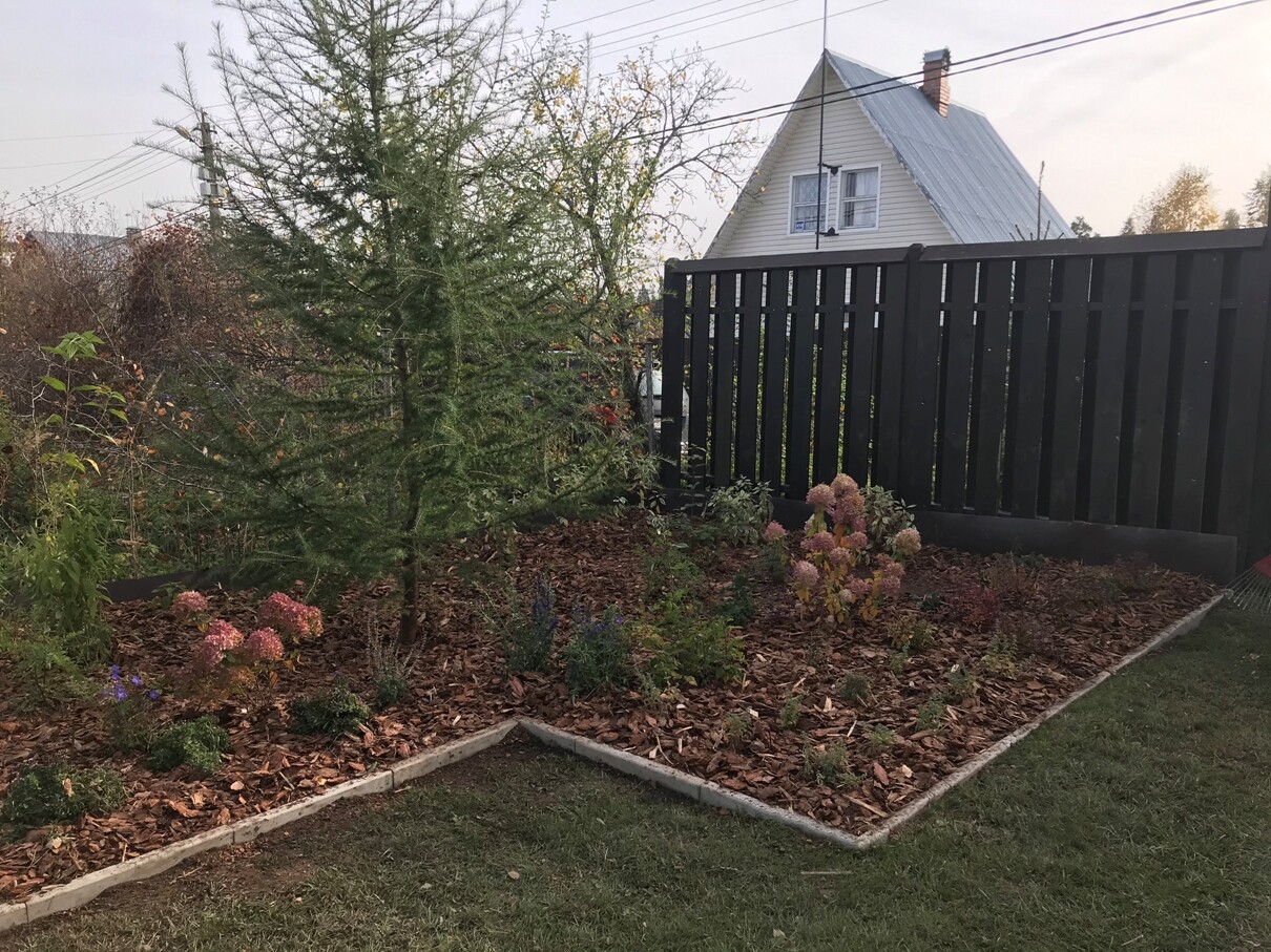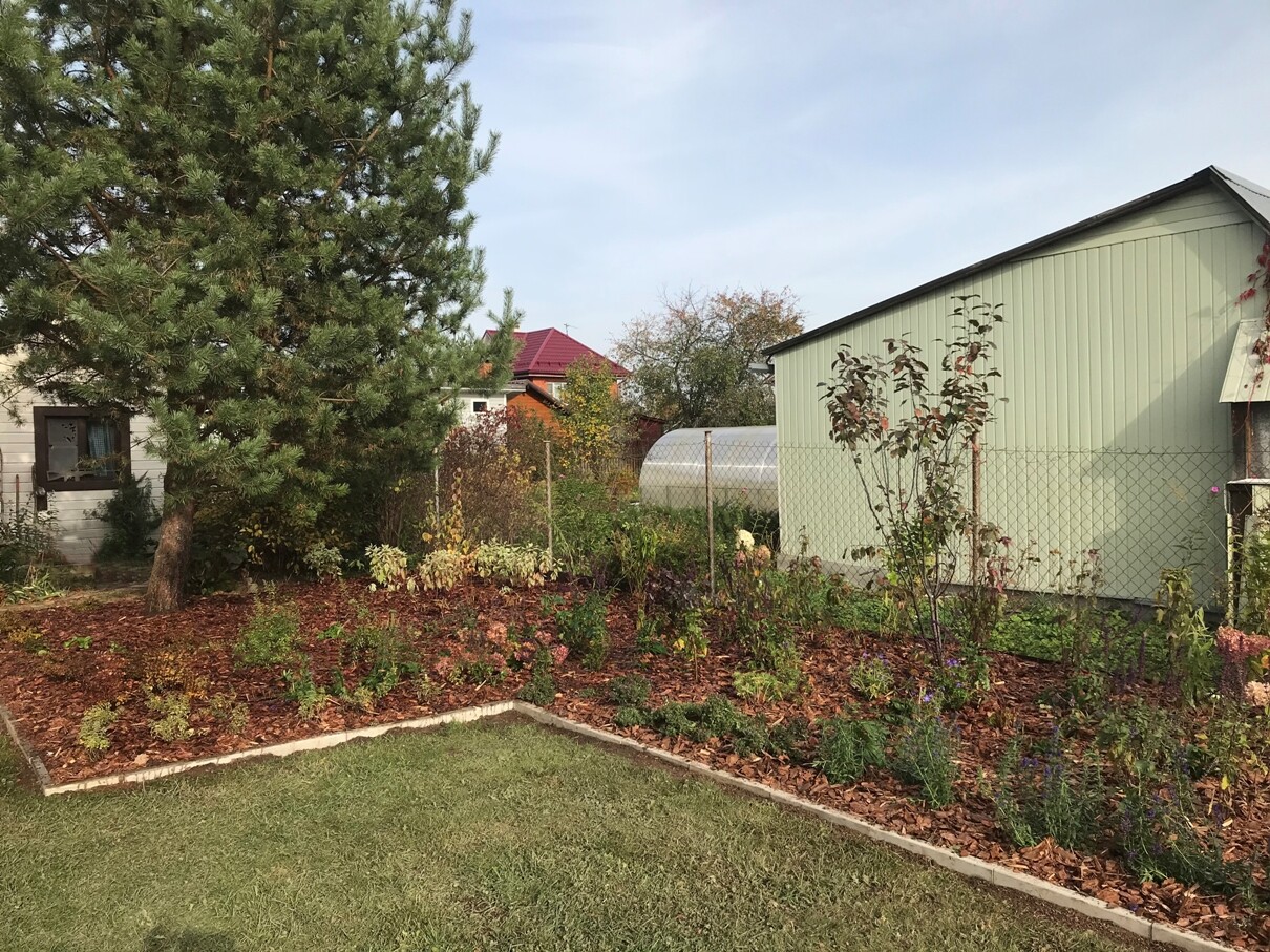 Исходно это был давно заложенный миксбордер с огромным количеством флоксов разных оттенков, кустами пионов, роз и хост.