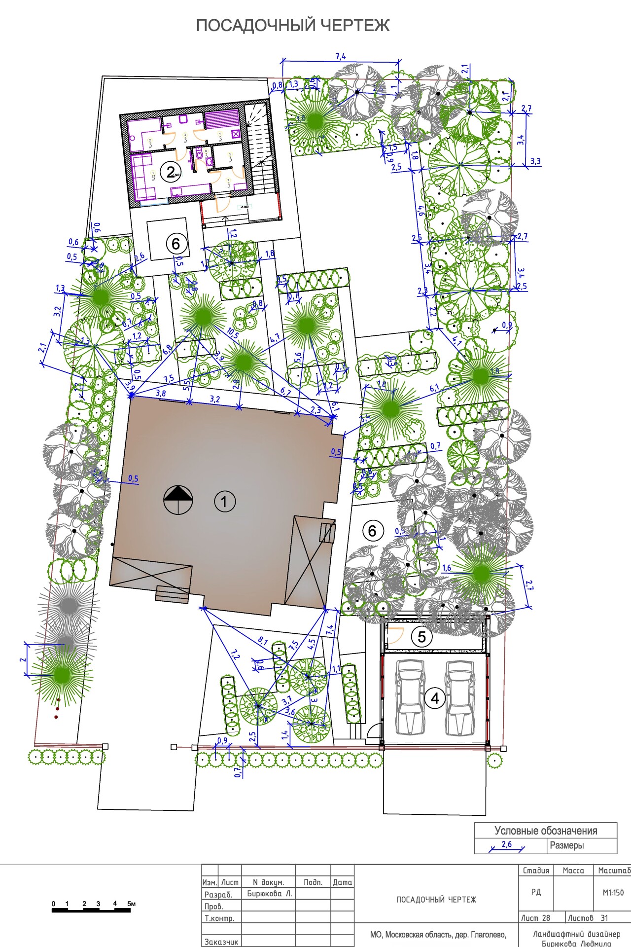 Посадочный чертеж. Содержит в себе все необходимые размерные данные для точного определения места посадки растений.