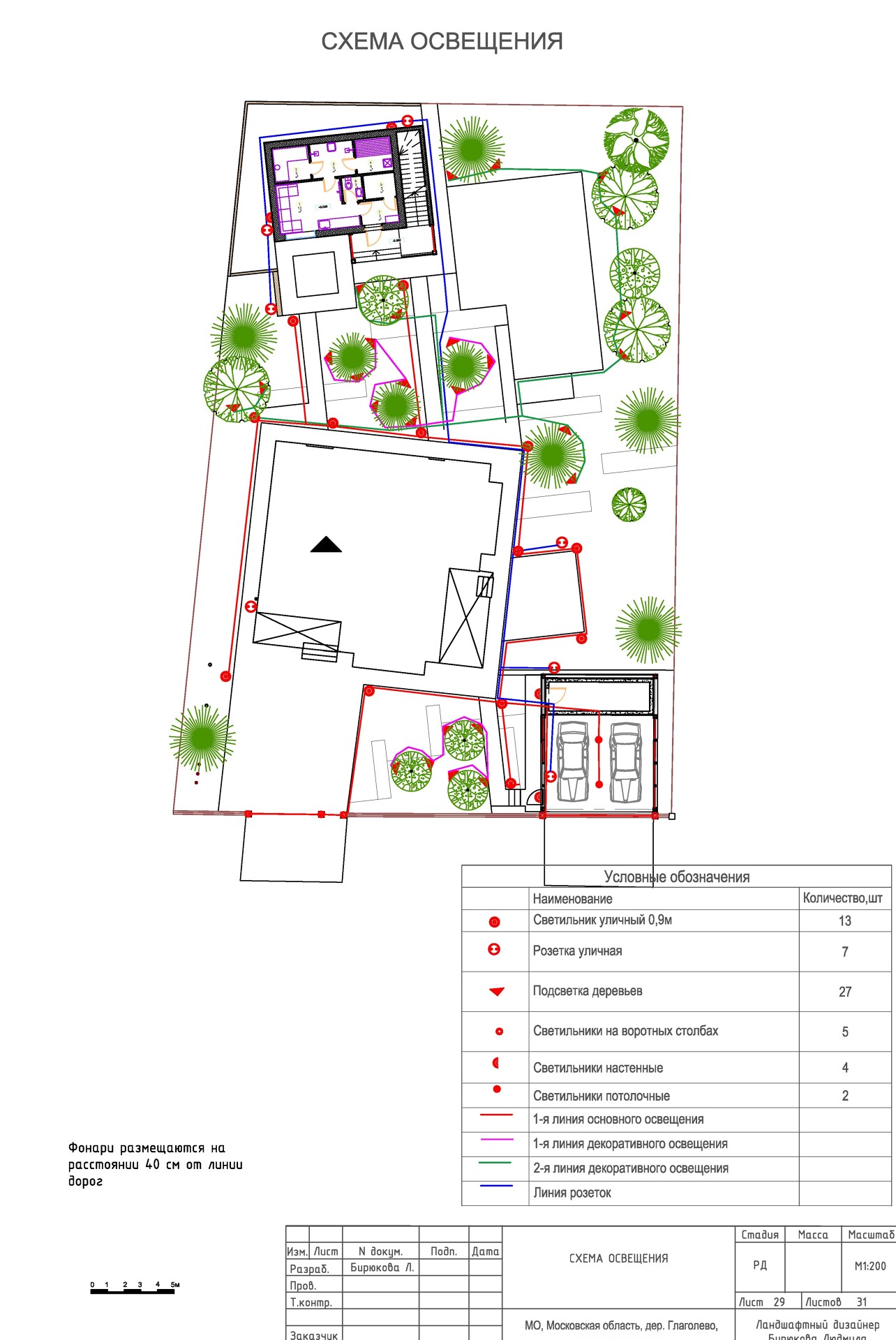 Схема освещения. Принципиальная схема освещения, на основании которой рассчитываются мощности, комплектация и объемы материалов электросети.