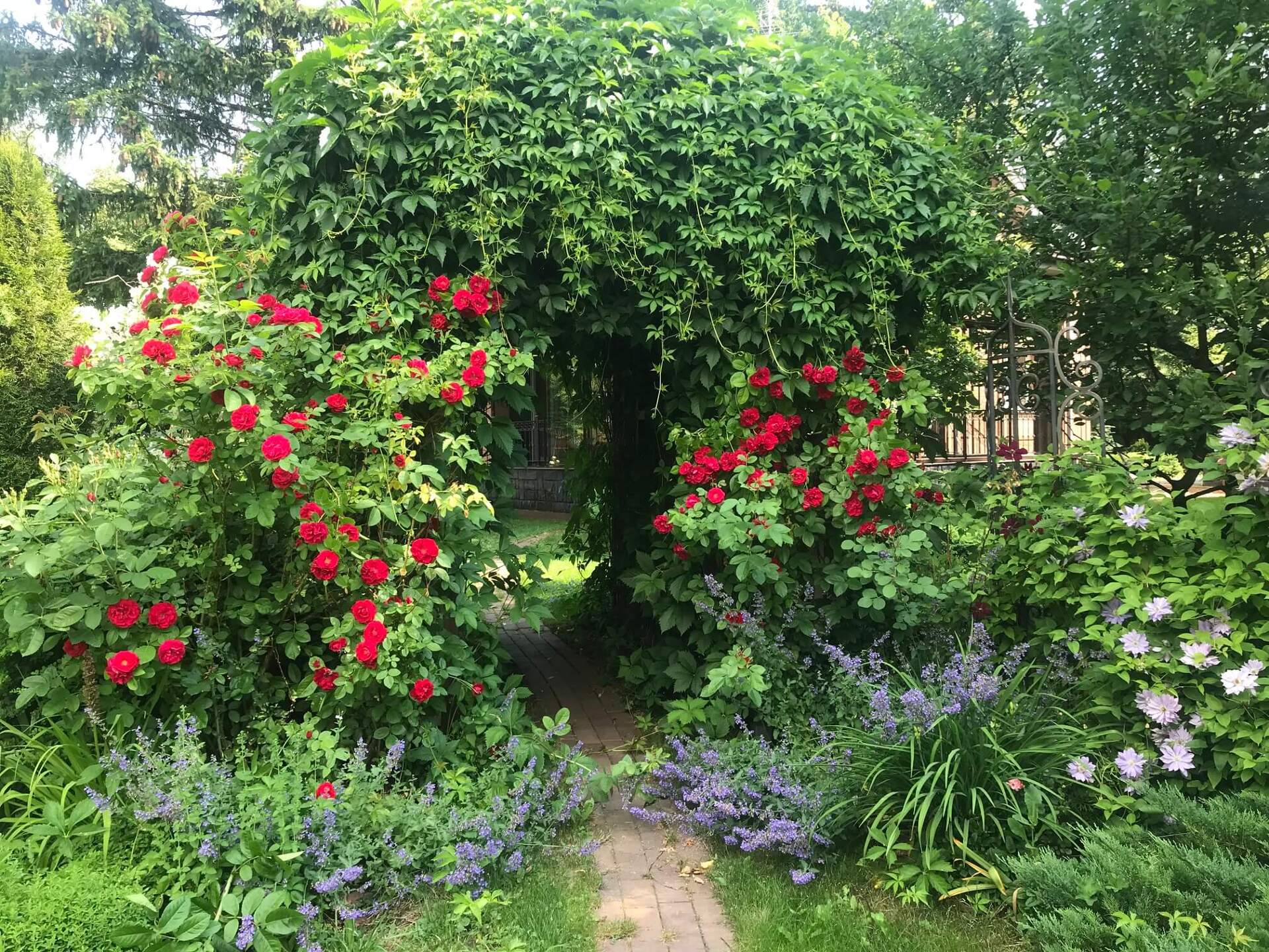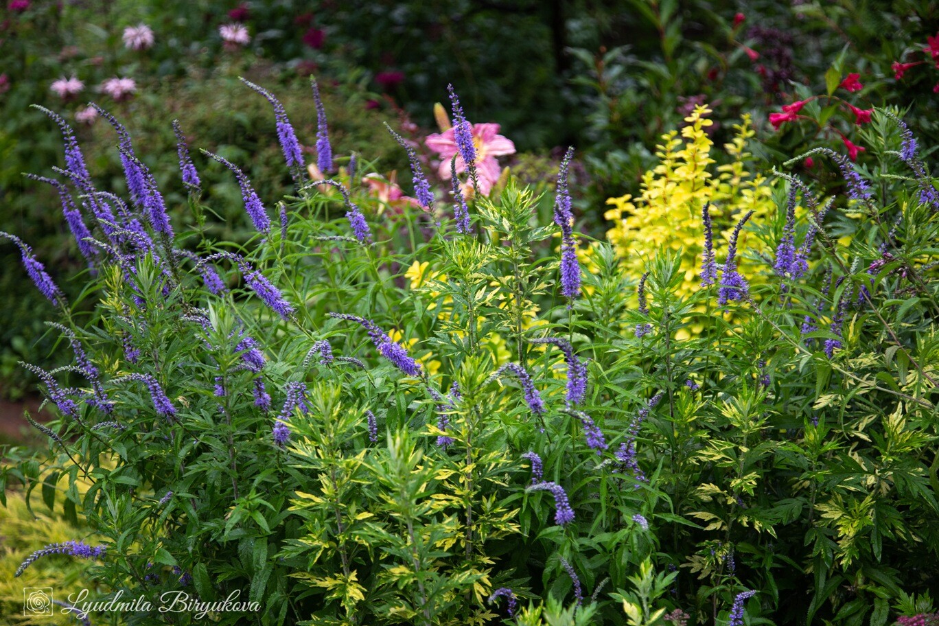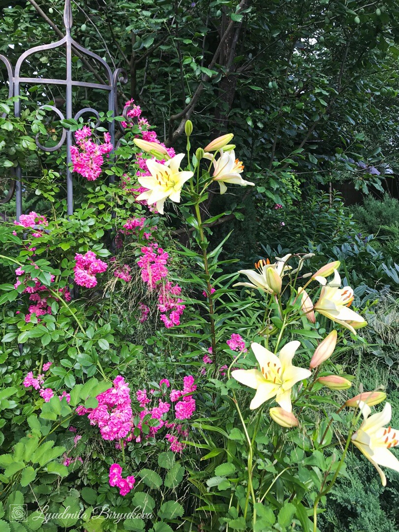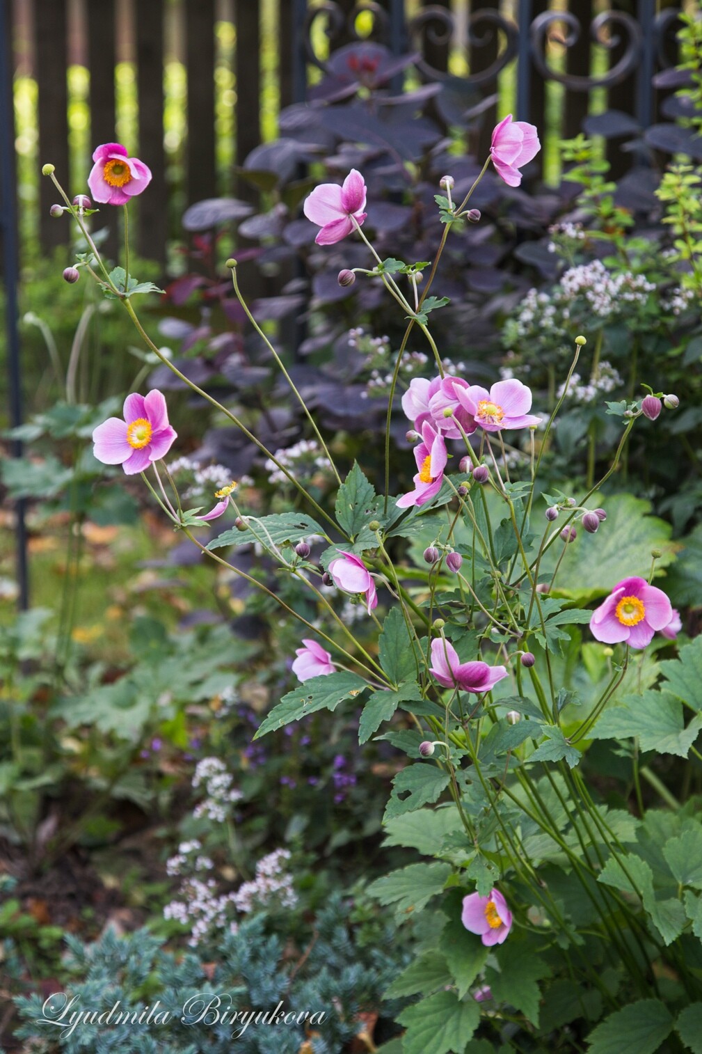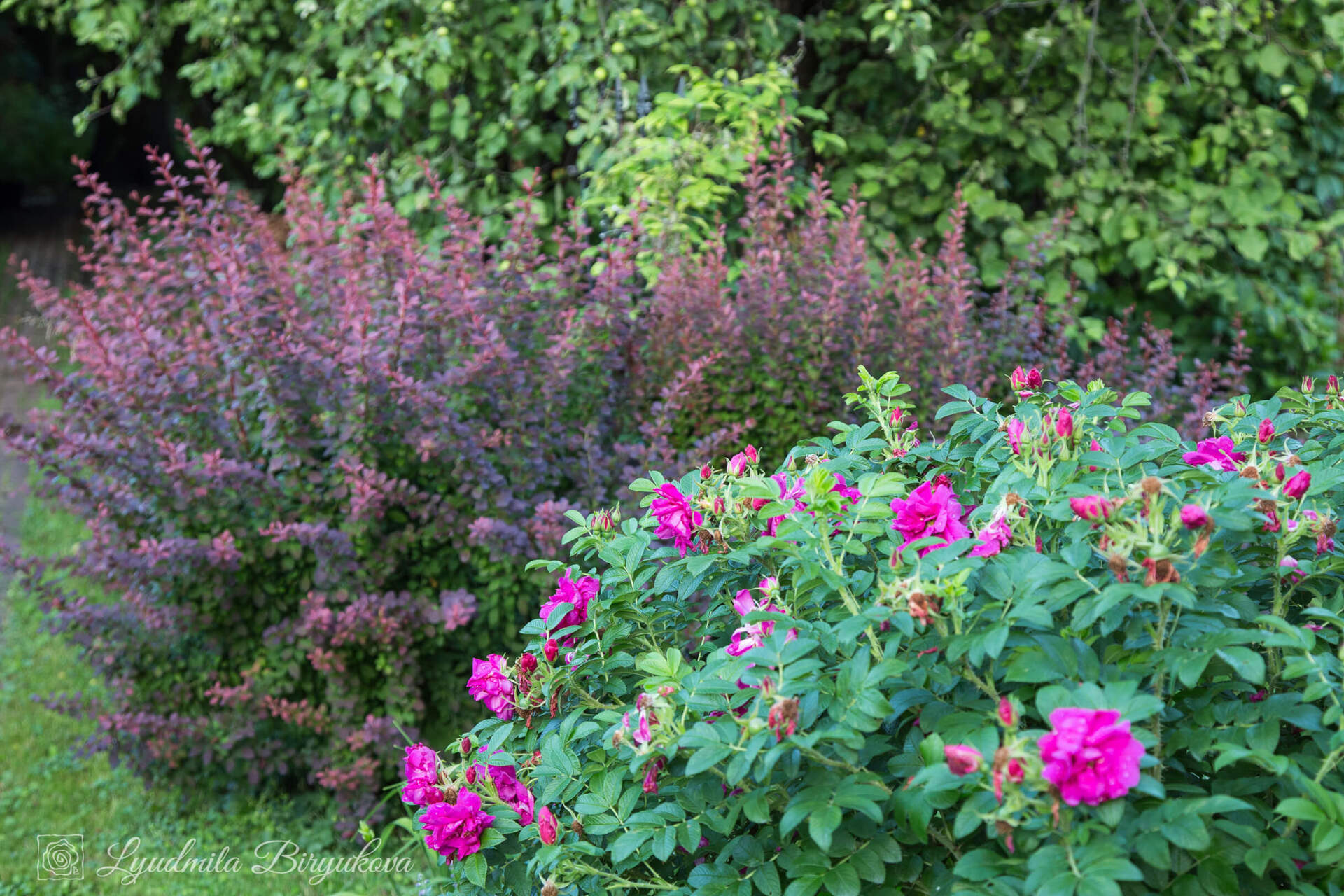 Этот сад, расположенный в стародачном поселке, создавался на участке с уже взрослыми лесными и плодовыми деревьями. Это было заброшенное и заросшее бурьяном место. В начале его освоения больные и недекоративные деревья и кустарники были удалены, а оставшиеся стали каркасом нового сада...