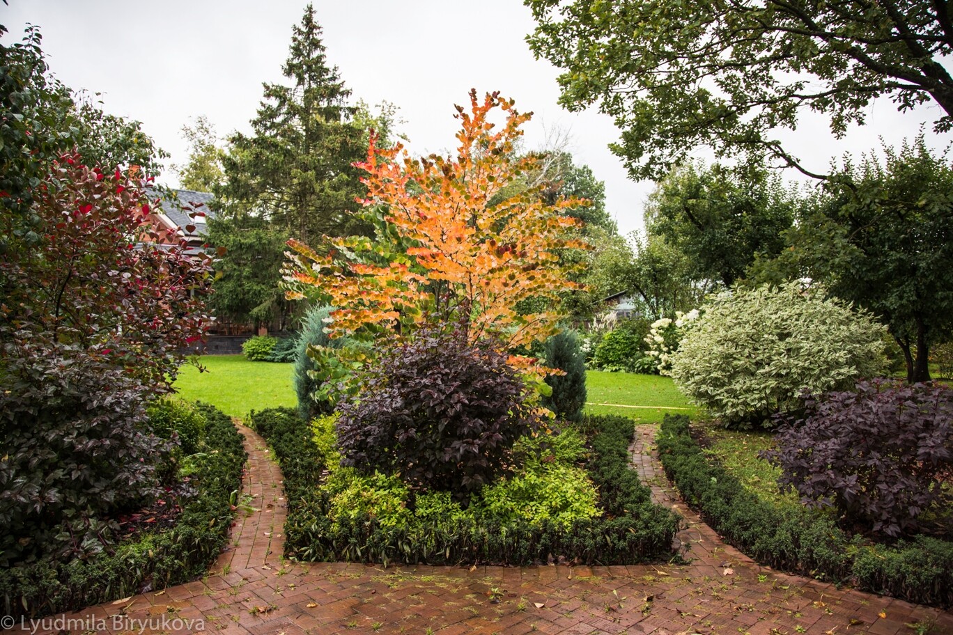 Основные планировочные решения были продиктованы духом этого места. Сад был создан в пейзажном стиле с элементами английского коттеджного сада.